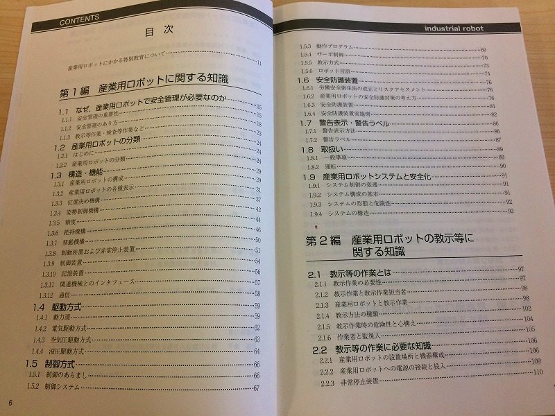 産業用ロボットについては、その教示等に係る機器の操作の業務に従事する者に対して、事業者は、「教示等」に係る特別教育を行うことが法令で義務づけられています。(労働安全衛生規則第36条第31号)